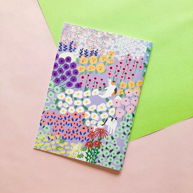 ノート【花畑とねこ】 A5サイズ やわらかパープル