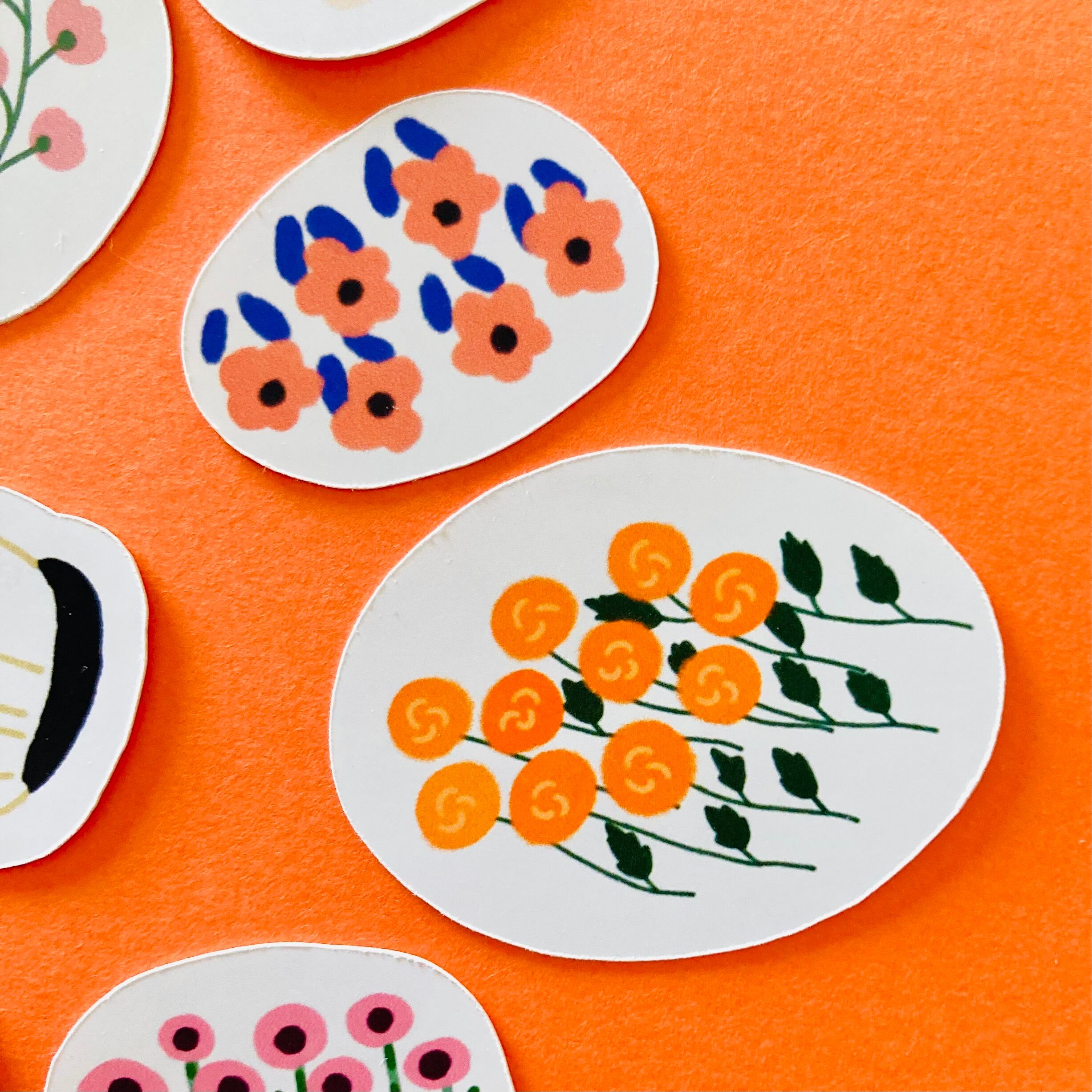 さまざまな色合いのお花のシールは、使い道を選ばず、ギフトラッピングやお手紙のアクセントにもぴったり。